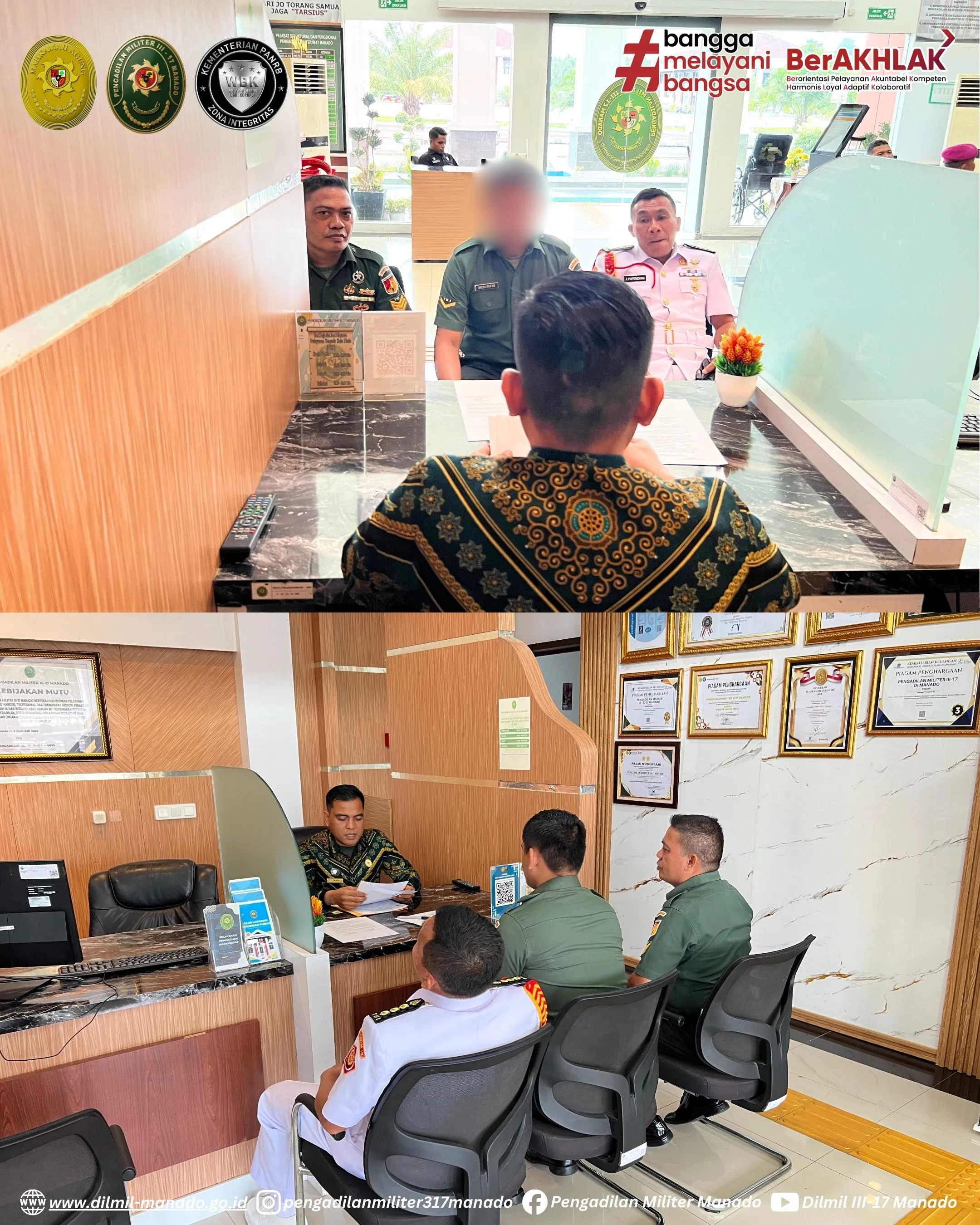 Pengadilan Militer III-17 Manado melaksanakan pembacaan putusan kasasi terhadap salah satu perkara yang sedang ditangani. Putusan dibacakan oleh Panitera Pengganti dengan didampingi oleh Oditur Militer serta Penasihat Hukum (PH) dari pihak berperkara.