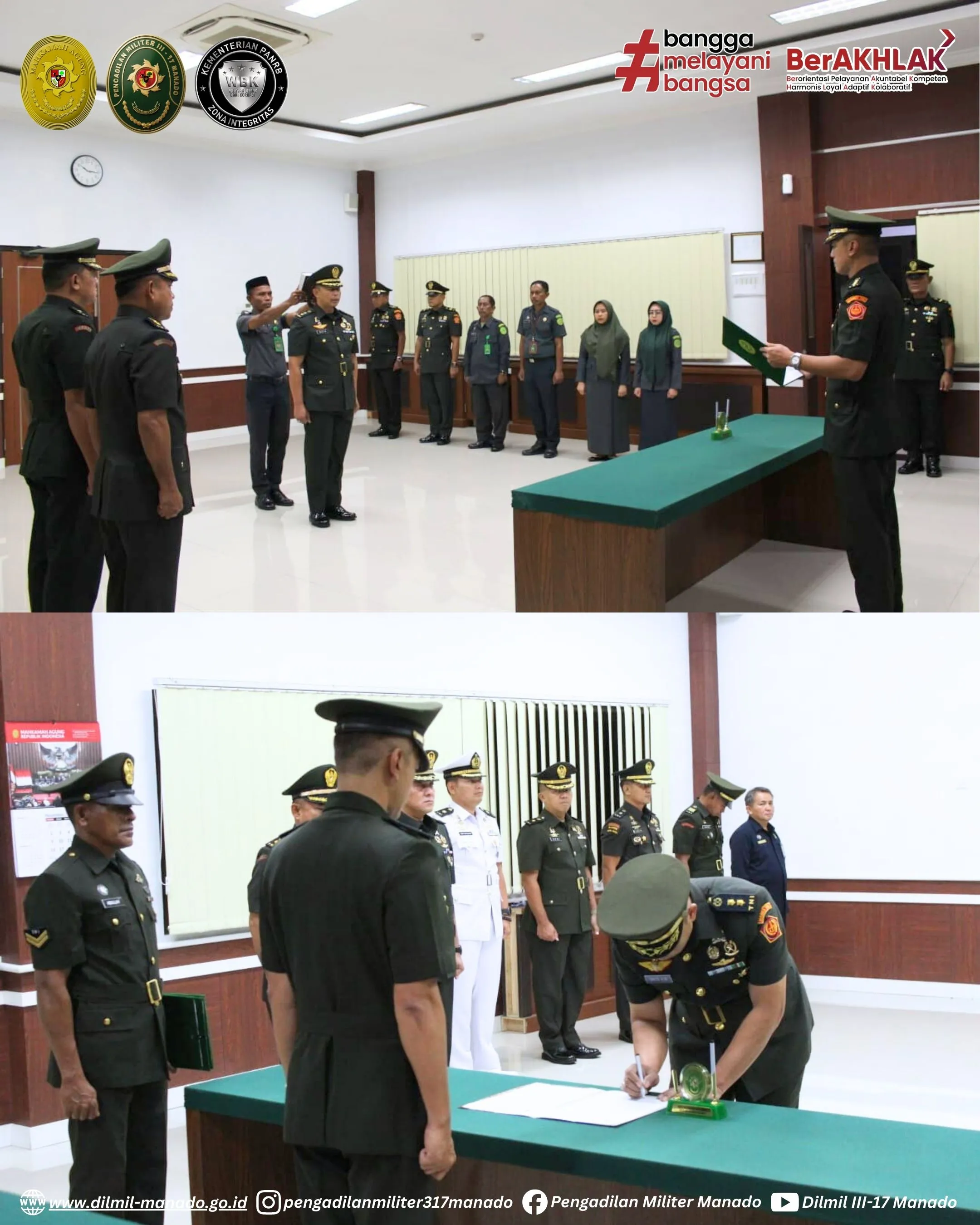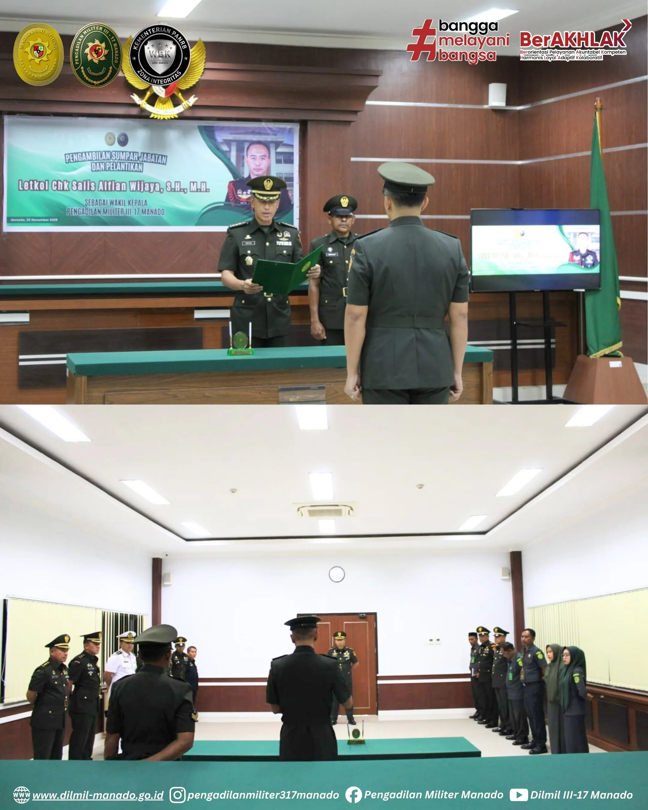 Pengadilan Militer III-17 Manado melaksanakan pengambilan sumpah jabatan dan pelantikan terhadap Wakil Kepala Pengadilan Militer III-17 Manado, Letkol Chk Salis Alfian Wijaya, S.H., M.H.