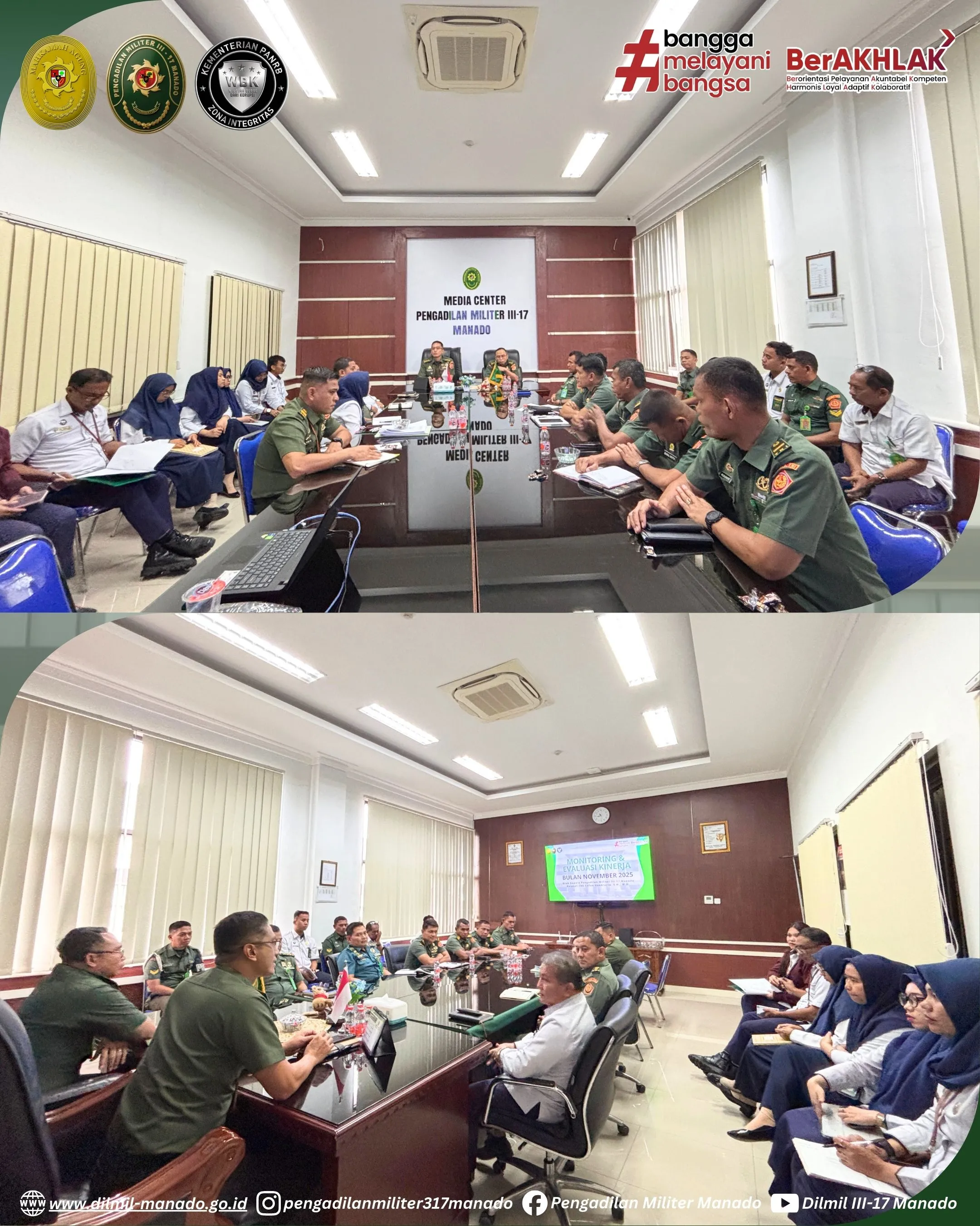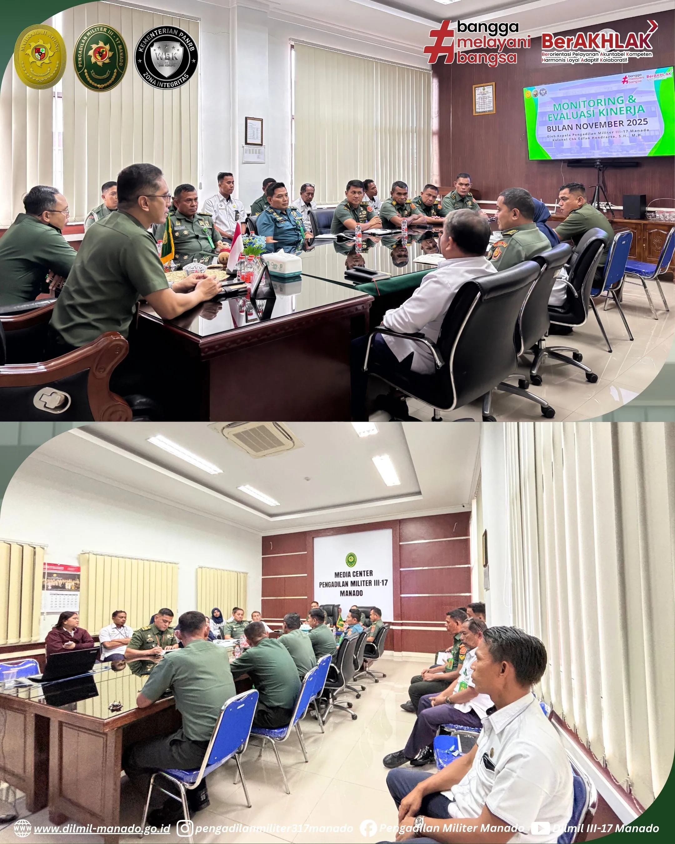 Pengadilan Militer III-17 Manado melaksanakan kegiatan Monitoring dan Evaluasi (Monev) Kinerja bulan November 2025 yang dipimpin langsung oleh Kadilmil Kolonel Chk Edfan Hendrarto, S.H., M.H.