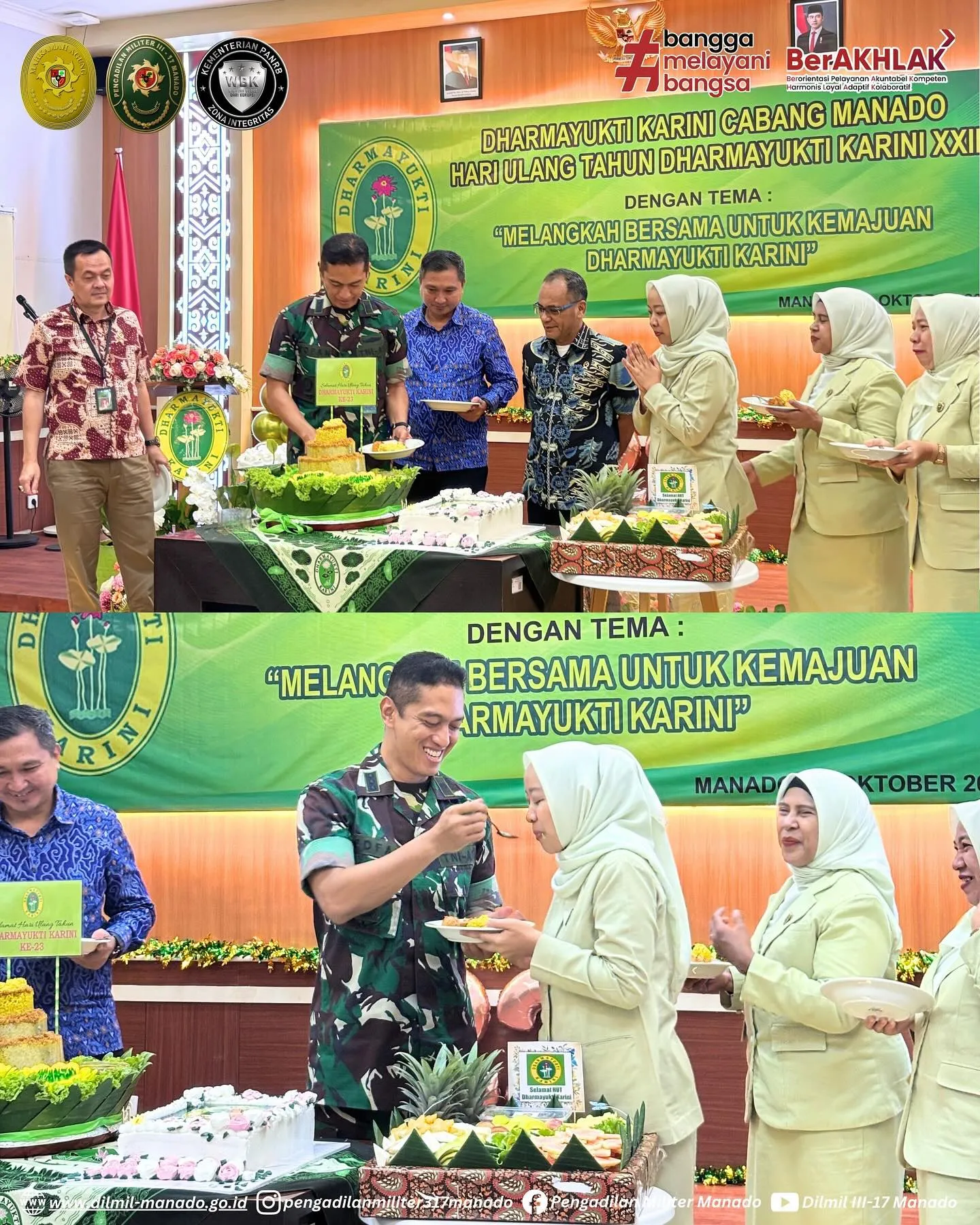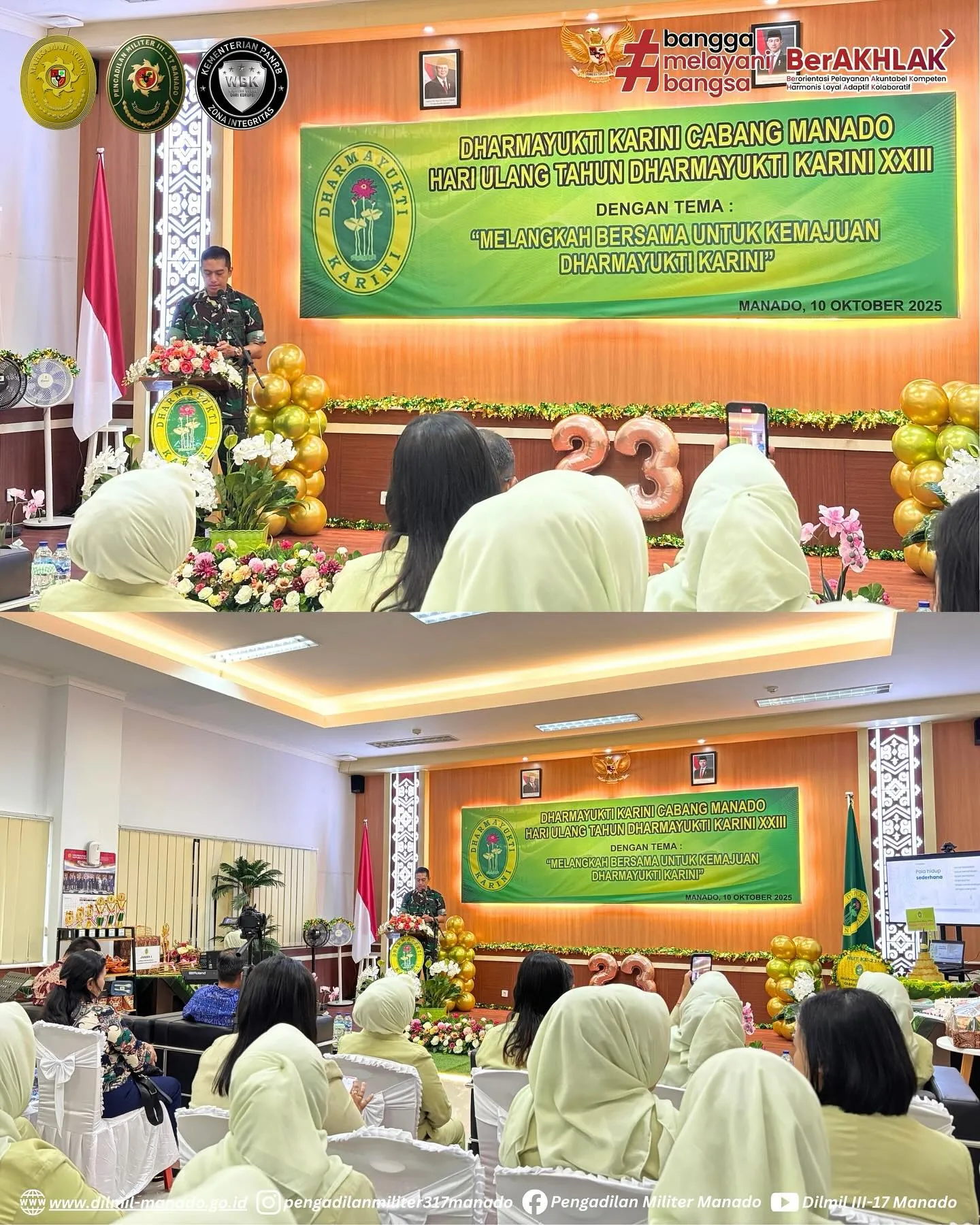 Pengadilan Militer III-17 Manado turut serta dalam kegiatan Hari Ulang Tahun Dharmayukti Karini (DYK) ke-23 yang diselenggarakan oleh DYK Cabang Manado bertempat di Media Center Pengadilan Negeri Manado.